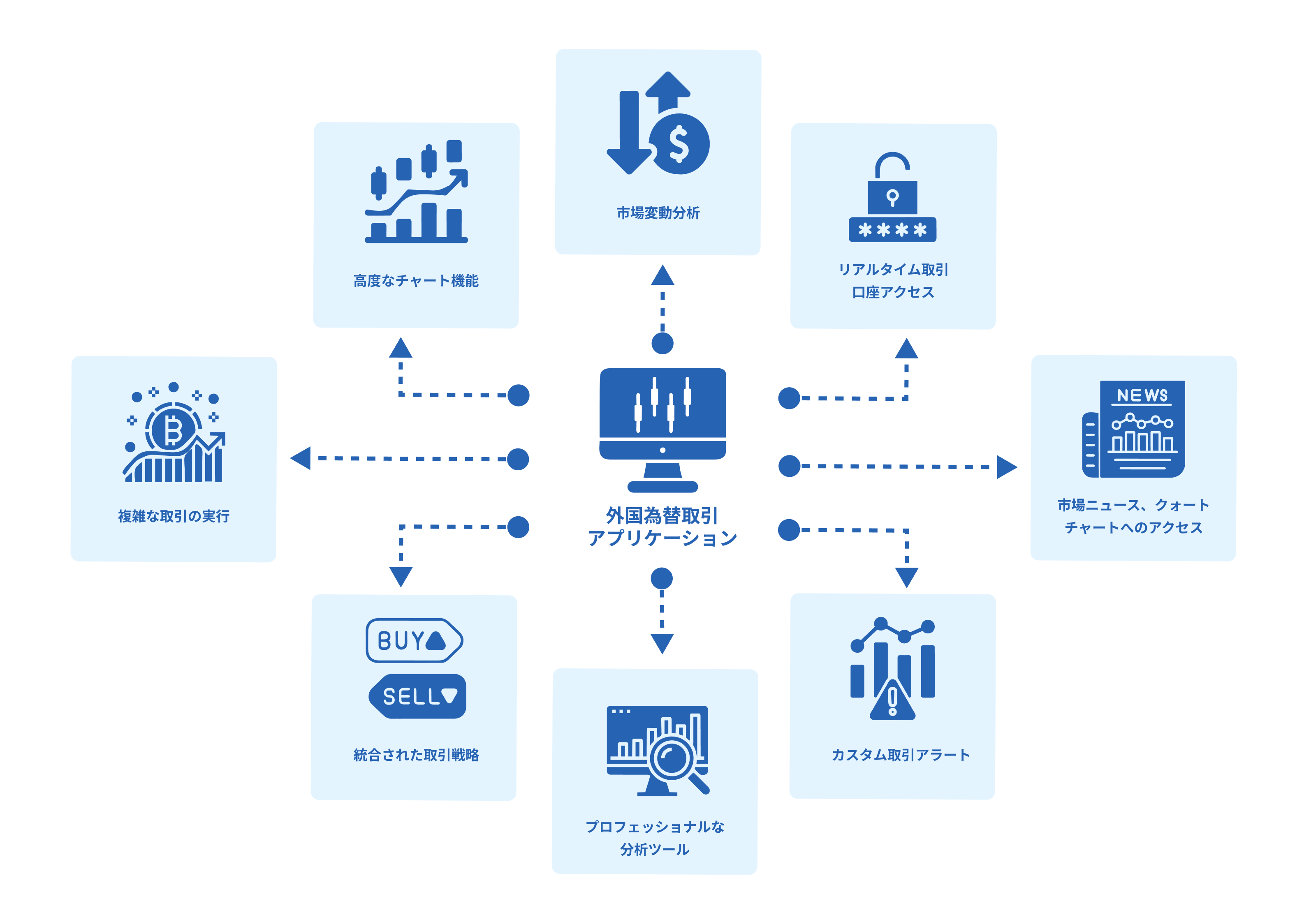 当社は、分析と取引戦略を備えた高度な取引アプリケーションを開発しました。アクティブな通貨トレーダーは、市場ニュース、相場、チャート、取引口座にいつでもアクセスしたいため、外国為替ソフトウェア アプリケーションは外国為替トレーダーの間で非常に人気があります。